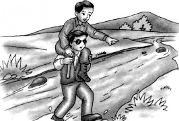Es conta que una vegada un coix i un cec arribaren a la vora d’un riu. Volien passar a l’altra riba, però no hi havia pont. El coix digué al company: