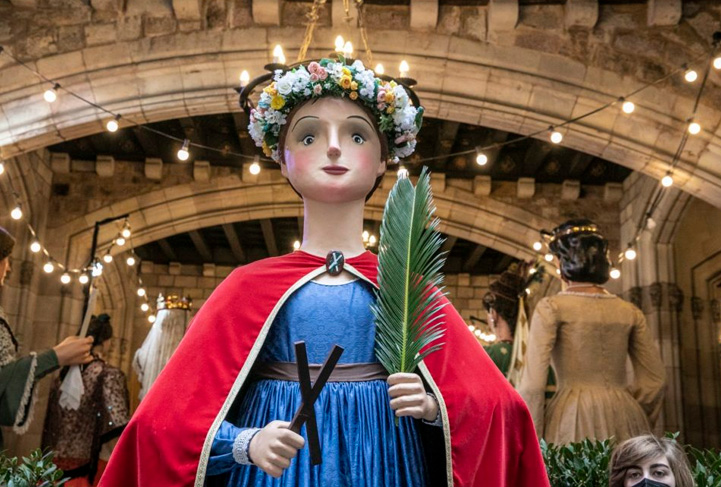 “Sóc Eulàlia, serventa de Crist, rei de reis i Senyor de senyors.” Com que no hi ha més rei i senyor que el Cèsar ni més llei que l’autoritat civil, per fer-la apostatar es recorre a la persuasió, a amenaces, a assots i al poltre. Finalment, dins d’una bóta plena de ganivets la fan rodar per un carrer costerut, la “baixada” que avui porta el seu nom.