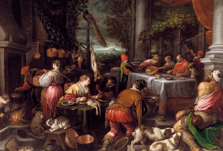 Hi havia un home ric que portava vestits de porpra i de lli i celebrava cada dia festes esplèndides. Un pobre que es deia Llàtzer s’estava ajagut vora el seu portal