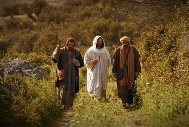 Aquell mateix dia, dos dels deixebles feien camí cap a un poble anomenat Emmaús, que es trobava a onze quilòmetres de Jerusalem, i conversaven entre ells de tot el que havia passat. Mentre conversaven i discutien, Jesús mateix se’ls va acostar i es posà a caminar amb ells, però els seus ulls eren incapaços de reconèixer-lo. Jesús els preguntà: