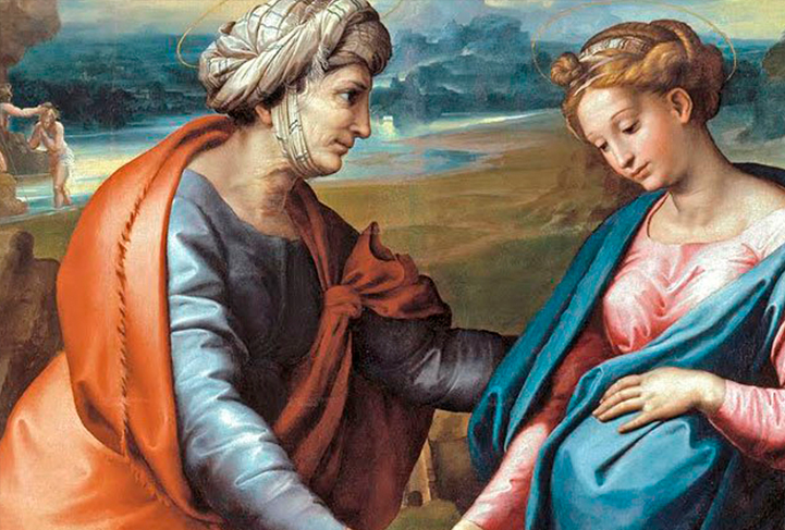 María, després de rebre l'Anunci de l'arcàngel Gabriel, sense dubtar-ho ni vacil·lar, es va posar en camí cap a casa d'Isabel, que estava embarassada, per oferir-li la seva companyia i ajuda. Maria deixa de banda les seves contemplacions i fa una visita sincera. Isabel, ja gran, necessitava ajuda, i Maria li ofereix la seva mostrant la seva gran pregària i, alhora, el seu servei. Quan Maria va arribar a la porta, la joia va entrar a casa. Isabel, en rebre-la, va exclamar: "Tan aviat com va arribar la veu de la teva salutació als meus oïdes, el nen va saltar de goig dins del meu ventre. Beneïda tu que has cregut, perquè el que el Senyor t'ha dit es complirà".