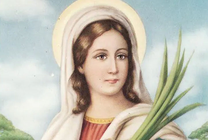 Va néixer a Sicília, a la ciutat de Siracusa, lloc on naixés visqués Arquímides, el gran savi de l'antiguitat. A principis de març de l'any 304, l'emperador Galeri va declarar una persecució universal i aferrissada contra els cristians. Els escriptors d'aquell temps ens expliquen coses tremendes. Per exemple, Eusebio de Cesarea, escriu: