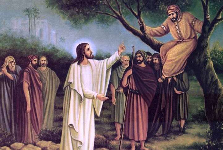 Jesús entró en Jericó y atravesaba la ciudad. Había un hombre llamado Zaqueo, jefe de los recaudadores de impuestos. Era un hombre rico. Zaqueo intentaba ver quién era Jesús, pero la multitud se lo impedía porque era de baja estatura. Entonces, corrió adelante y se subió a un sicómoro para poder ver a Jesús, que pasaría por allí. Cuando Jesús llegó a ese lugar, levantó los ojos y dijo: